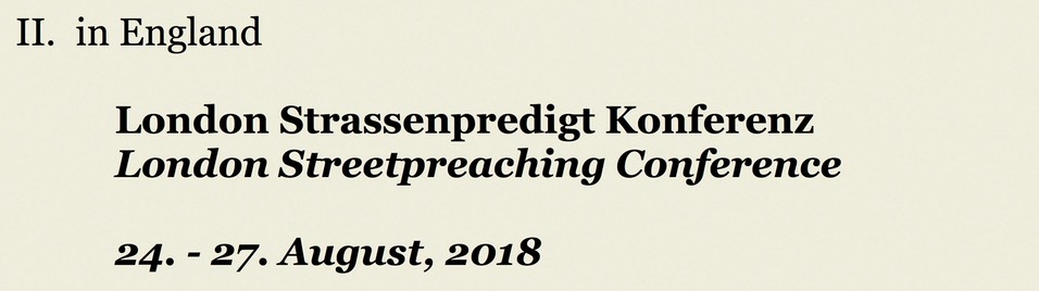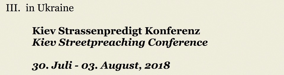 18. Europäische Strassenpredigt Konferenz     Mittel-, West- und Osteuropa   www.strassenprediger.org